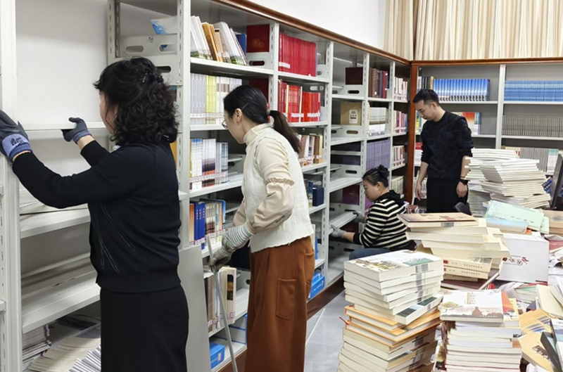 随着整理工作的推进,上架环节成为重中之重。工作人员将文献放置在相应书架上,同时注重文献排列的逻辑性与美观度,确保文献陈列既实用又规整。截至目前,共完成地方文献4200余册的登记、倒架、上架等工作。整理和扩容后的地方文献室空间布局更为合理,环境更加舒适,存储和展示功能得到显著提升,也为地方文献的开发和利用奠定了坚实的基础。