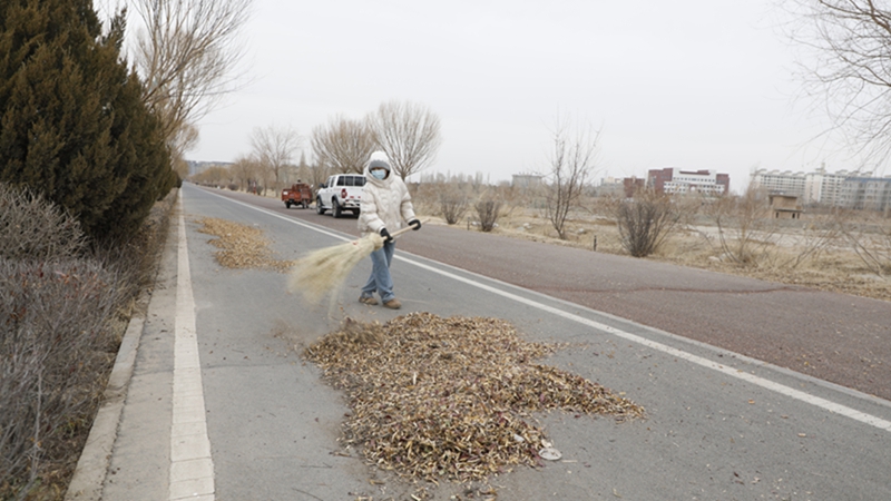 临泽县开展冬季落叶清扫攻坚行动