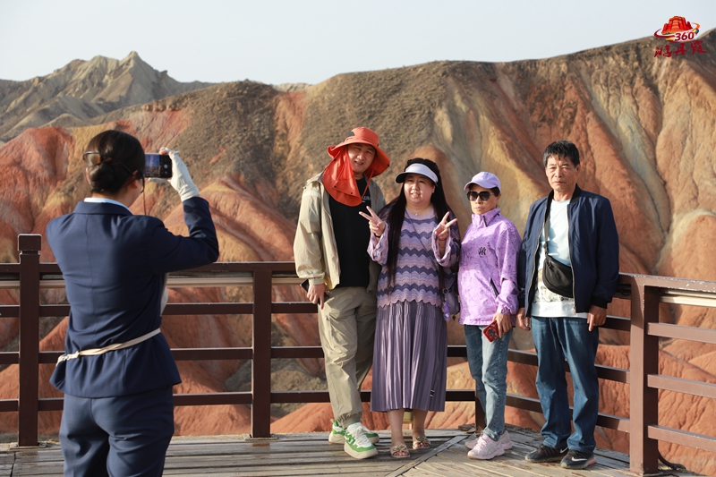 瑰丽的景色带来强烈的视觉震撼,而七彩丹霞景区无微不至的优质服务,更令游客印象深刻。专业讲解员以抑扬顿挫、生动流畅的讲述,为游客解析丹霞地貌的亿年演化与人文故事。在讲解临近尾声时,还会主动为游客拍摄照片,贴心帮助游客们定格美好瞬间、留存珍贵回忆。