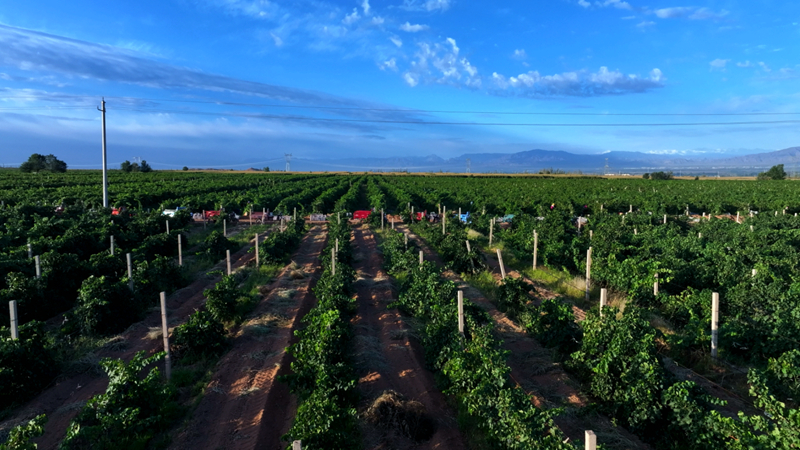 金秋九月,走进甘肃红桥庄园,5000亩葡萄园正值丰收时节。绿意盎然的藤蔓延伸至天际,串串成熟的葡萄在阳光下晶莹剔透,散发着醉人芬芳。工人们穿梭于藤蔓间,采收这份大自然的馈赠,也为一颗葡萄蜕变为琼浆玉液按下了“启动键”。