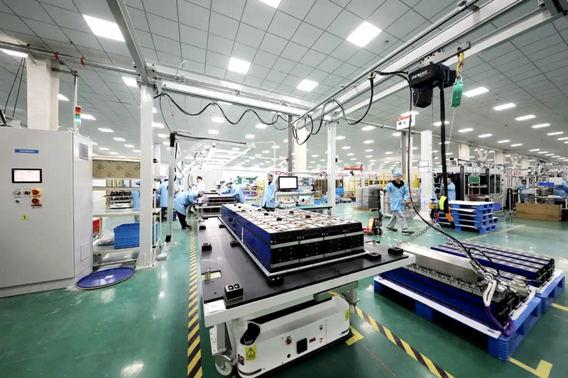 据企业负责人介绍,该生产线深度融合工业4.0理念,以高度的自动化与信息化为核心特征。其中,全自动AGV物流系统构成了产线的“智慧血脉”,可依据中央调度系统指令,在物料仓库、生产线与成品区之间实现精准、高效、灵活的无人化穿梭。从电芯上料到模组精准配送,再到PACK成品自动出入库,AGV系统无缝衔接每一道工序,确保生产节拍极致流畅。