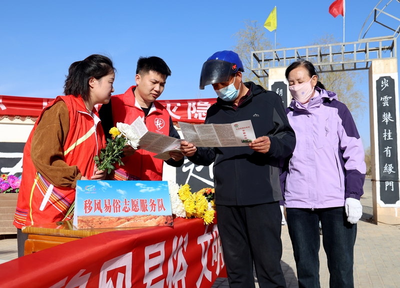 “阿姨,您看,用鲜花祭扫既环保又庄重,心意一点也不少。”4月1日,临泽县民政局在县公墓区入口设立宣传服务点,悬挂起“移风易俗 文明祭祀”的横幅,工作人员向祭扫群众发放《殡葬管理条例》宣传手册和文明祭祀倡议书。他们用质朴的语言,耐心讲解节地生态安葬的奖励政策、惠民殡葬补贴的申领流程及墓区管理规定,将文明祭扫的理念娓娓道来,引导居民摒弃焚烧纸钱、燃放鞭炮等传统习惯,选择鲜花祭扫、集体共祭等绿色环保方式寄托哀思。