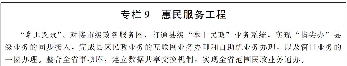 1.构建高速泛在的政务网。坚持同架构、广覆盖、高可靠、富能力的建设思路,推进全省电子政务外网升级改造,延伸覆盖范围,建设全省统一的承载充足、技术先进、自主可信的政务外网网络体系,为跨层级、跨区域、跨部门的网络互通、数据共享、应用协同提供支撑。