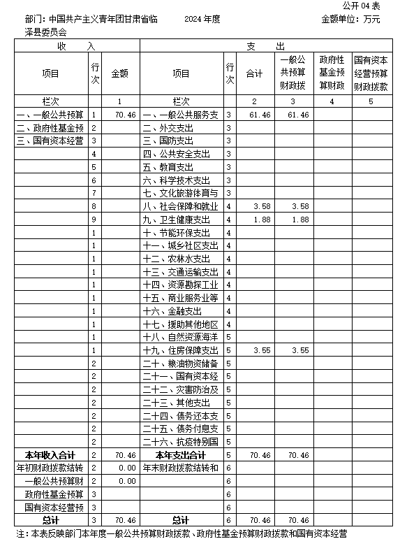 2024年度收、支总计均为70.46万元。与上年度相比,收、支总计各增加9.62万元,增长15.82%,主要原因是我单位于2024年5月调出1人。