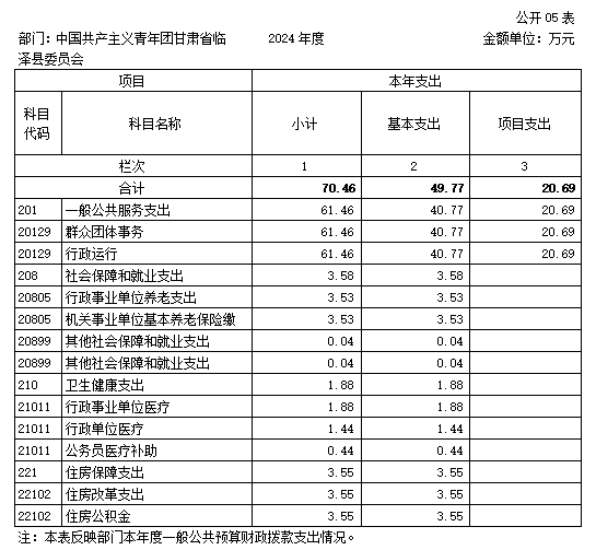 2024年度支出合计70.46万元,其中:基本支出49.77万元,占70.64%;项目支出20.69万元,占29.36%;上缴上级支出0.00万元,占0.00%;经营支出0.00万元,占0.00%;对附属单位补助支出0.00万元,占0.00%。