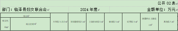 2024年度收、支总计均为171.01万元。与上年度相比,收、支总计各增加25.00万元,增长17.12%,主要原因是2024年县委县政府为民办实事为临泽户籍35-64周岁妇女购买“两癌”保险的收入380000元,支出292840。2024年人员工资社保费用福利等支出666560.62元。