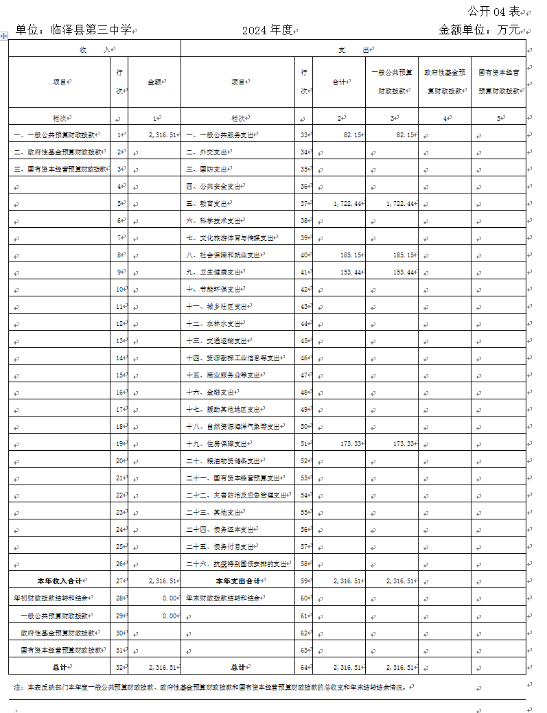 由于决算公开表格中金额数值应当保留两位小数,公开数据为四舍五入计算结果,个别数据合计项与分项之和存在小数点后差额,特此说明。