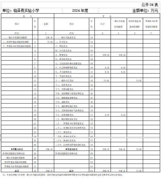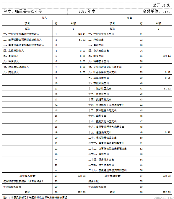 2024年度收、支总计均为992.33万元。与上年度相比,收、支总计各增加992.33万元,增长100%,主要原因是我校为新建学校,2023年无部门决算。