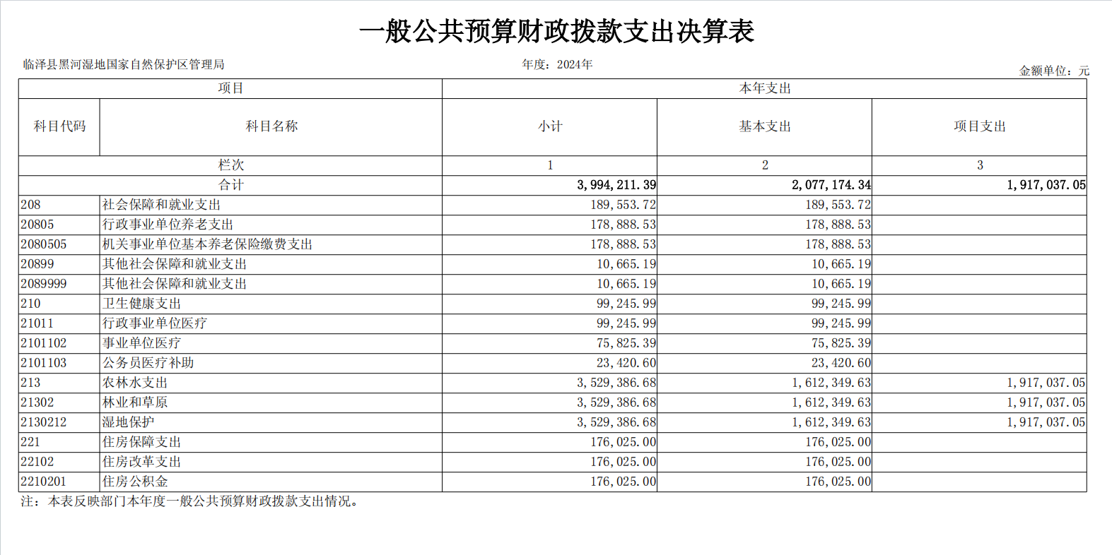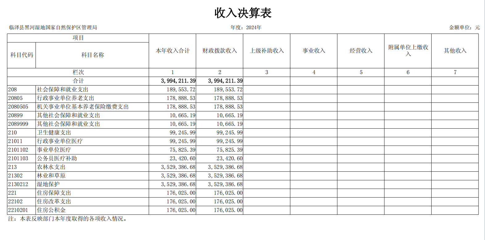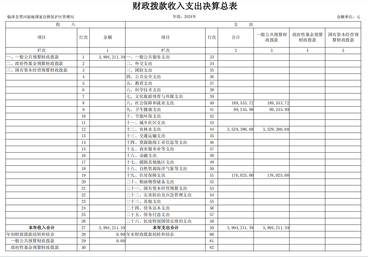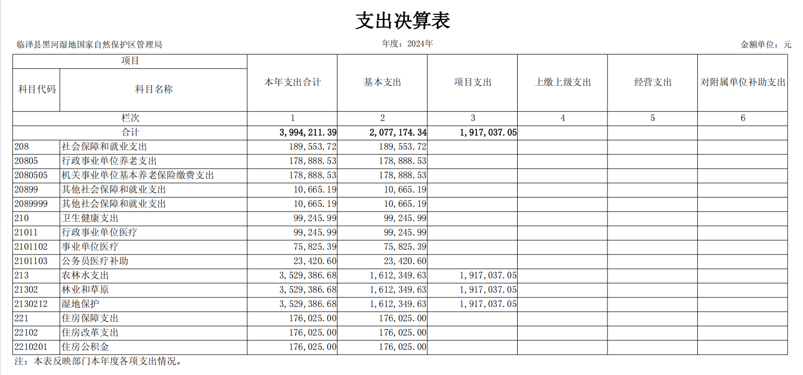 临泽县黑河湿地国家级自然保护区管理局部门决算