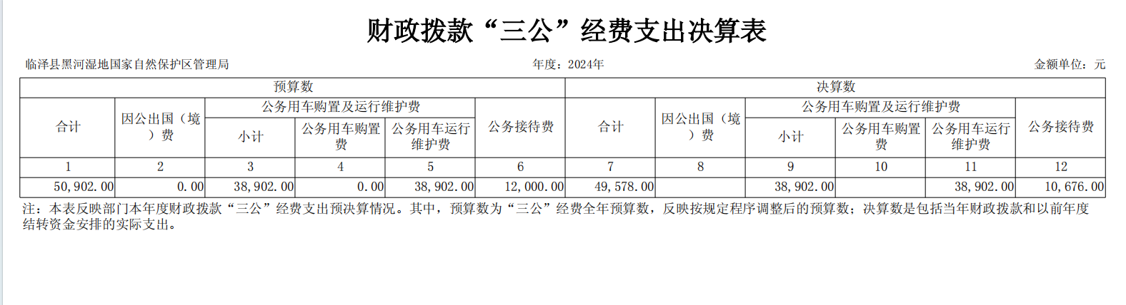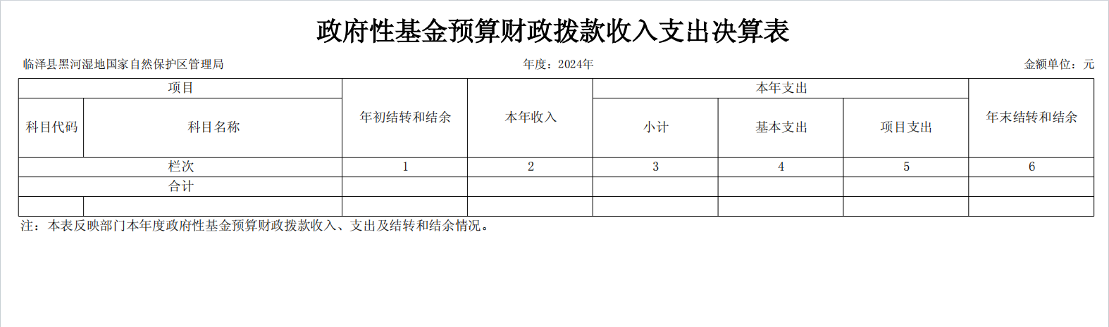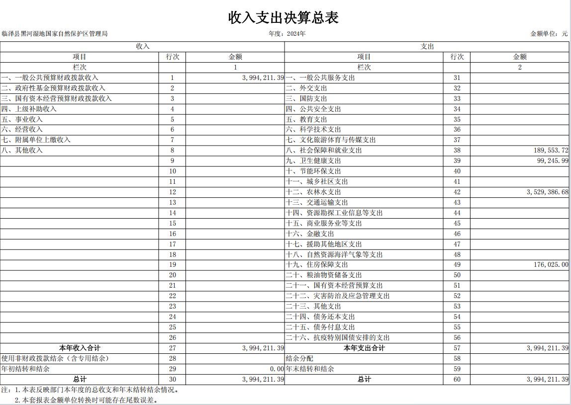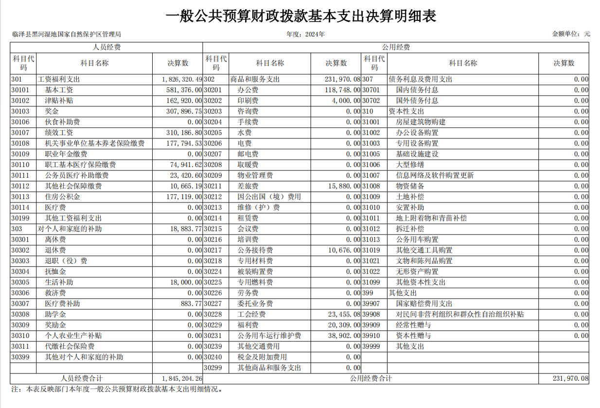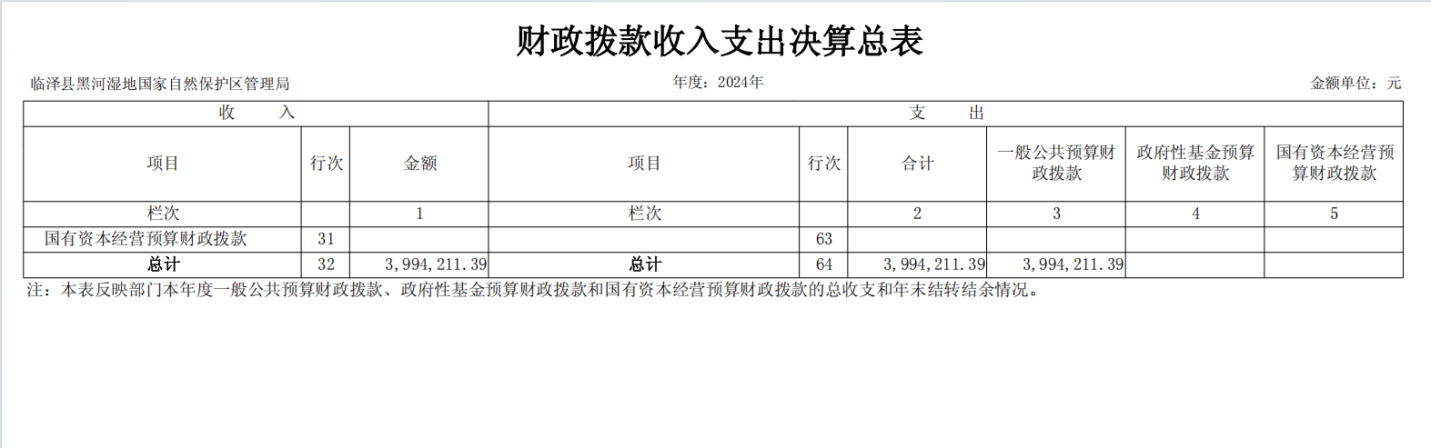 临泽县黑河湿地国家级自然保护区管理局部门决算