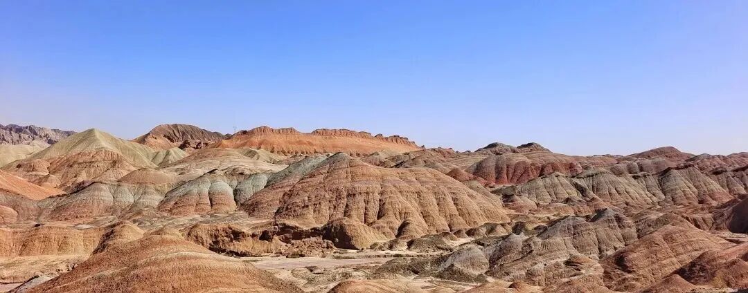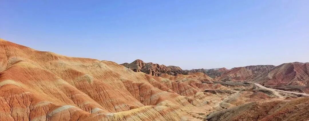 一走进张掖世界地质公园,就被层层叠叠、色彩斑斓的山丘所震撼。红、橙、黄、白、灰等色彩交织在一起,如同一幅天然的巨型油画铺展在天地间,在阳光的照耀下,散发出迷人的光彩。