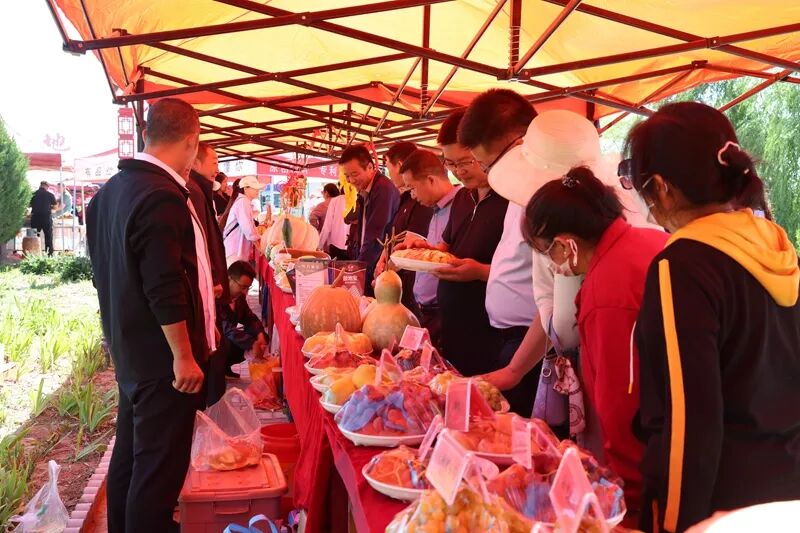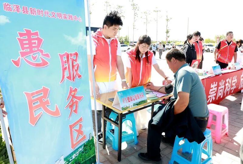 婚礼仪式后,文明集市、移风易俗、非遗体验、惠民服务四大区域同时开放,现场人头攒动、气氛热烈。文明集市区内,“社会主义核心价值观投壶”“垃圾分类投沙包”等互动游戏吸引群众排起长队,通过趣味游戏学习文明知识;美食和特产展位前,炕馍馍、鸡肉焖卷子等农家美味香气扑鼻,葡萄酒、草编等“板”字号产品琳琅满目。移风易俗区中,讲解员生动讲述七夕文化,群众踊跃参与“快问快答”,志愿者书写家训传递文明家风,夫妻们身着中式礼服在打卡墙前留下甜蜜影像。非遗体验区吸引年轻人亲手绘制漆扇、体验草编,感受面塑、剪纸的传统魅力。惠民服务区则汇聚政策宣传与健康服务,多部门开展普法、反诈宣传,机器人表演、AI互动及义诊推拿等贴心服务广受好评。