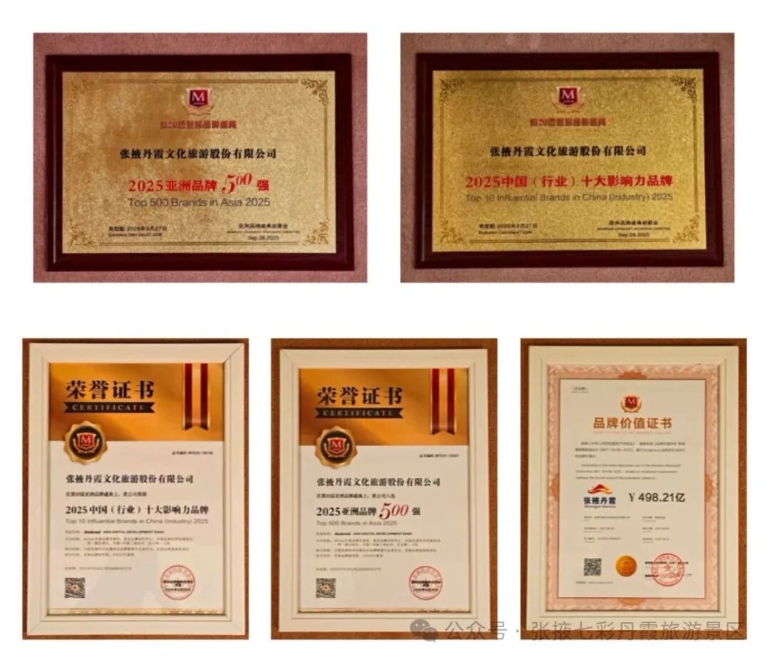 亚洲品牌盛典已成功举办十九届,享有亚洲品牌年度“奥斯卡”的美誉,得到来自中国、日本、韩国、新加坡、马来西亚、泰国、印度等亚洲国家以及中国香港、澳门、台湾等地区政商名流、行业协会和知名企业的积极支持和踊跃出席,已成为亚洲品牌年度盛宴和品牌国际化推广桥梁。“第20届亚洲品牌盛典”从企业市场繁荣度、发展潜力、经济效益等多个维度对亚洲地区企业进行了筛选,并综合品牌影响力、创新能力及社会责任等指标进行评估,最终确定2025亚洲品牌500强名单。张掖丹霞凭借独特的自然资源优势与持续的品牌建设投入,在众多参评品牌中脱颖而出,荣膺2025中国(行业)十大影响力品牌,充分展现了中国文旅品牌的国际竞争力与可持续发展潜力。