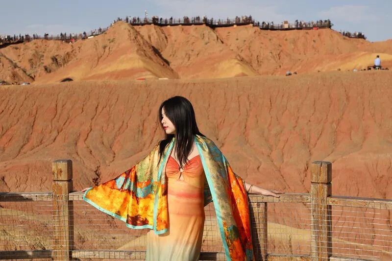 10月3日,在国庆中秋假期第三天,张掖七彩丹霞迎来了一轮客流高峰,游客欢声笑语、构成了一幅动感十足的假期画卷。张掖七彩丹霞景区为丰富游客体验,全天候运营直升机、热气球、动力滑翔伞、全地形越野车、乘驼观光等项目,为游客带来多层次、沉浸式的游览体验。同时,景区推出“丹霞织锦 礼乐寻游”系列文化活动,NPC小剧场、唱响红歌、国风T台秀、古装互动等项目也吸引大量游客参与。
