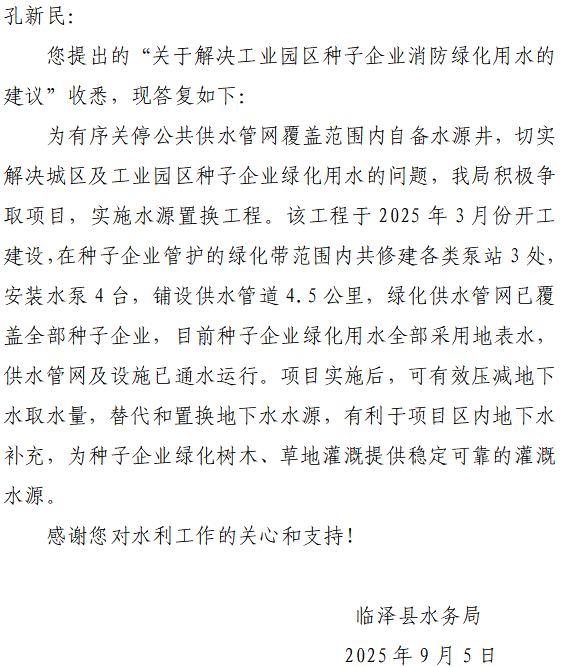 临泽县水务局关于对县政协十届四次会议期间第21号提案的答复