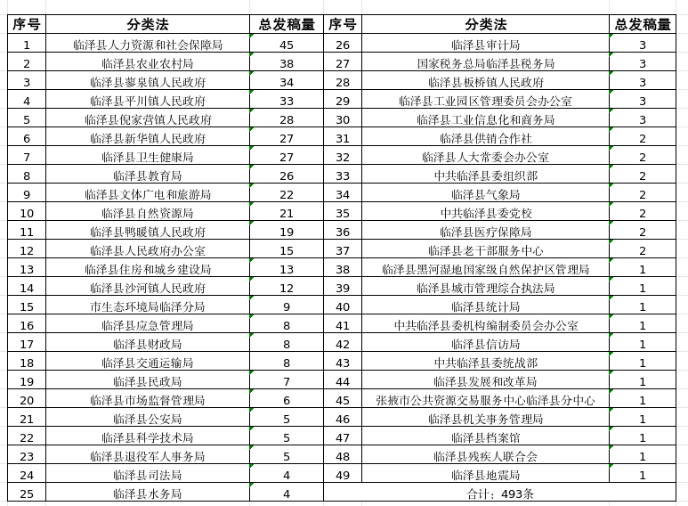 临泽县人民政府门户网站政府信息公开情况公示2025年09月