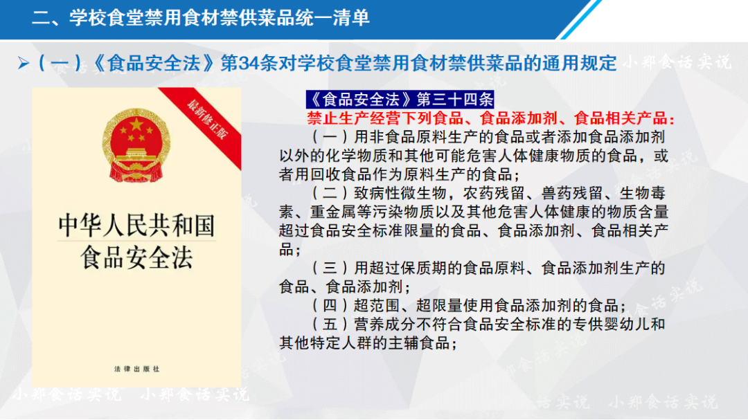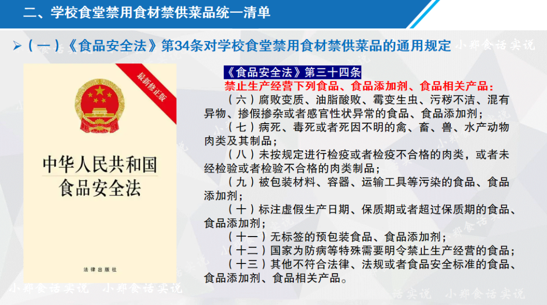 (一)《食品安全法》第34条对学校食堂禁用食材禁供菜品的通用规定