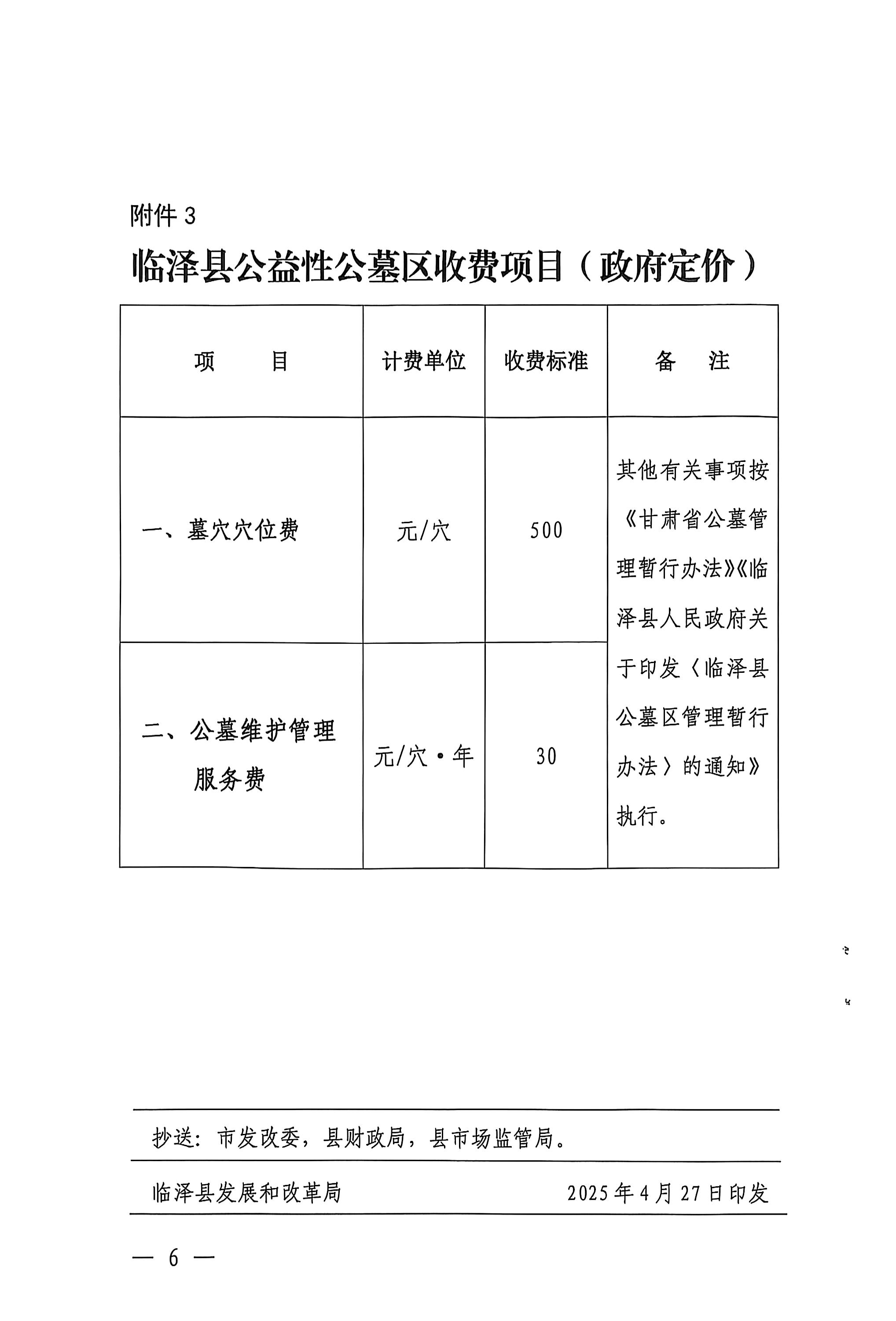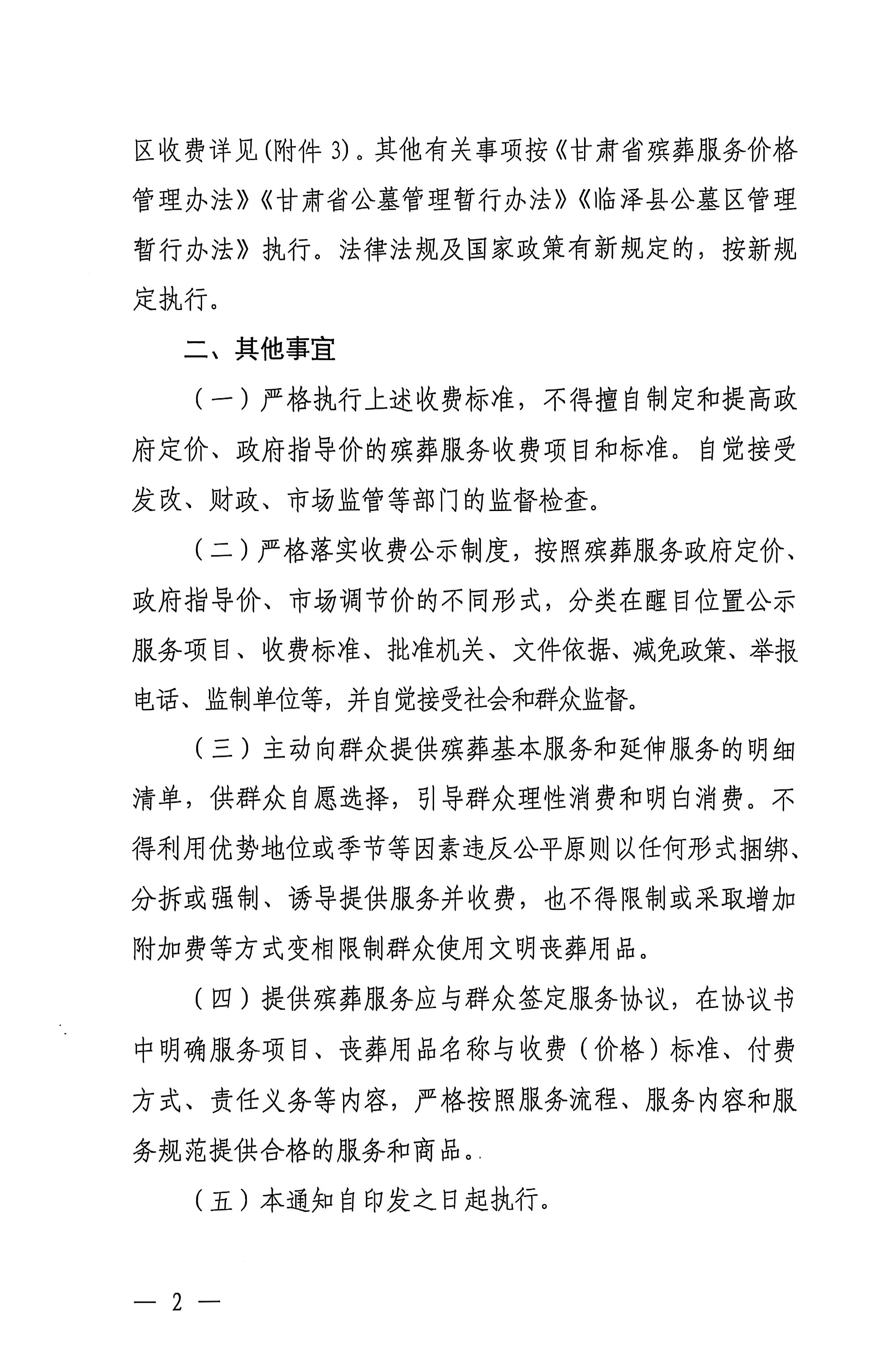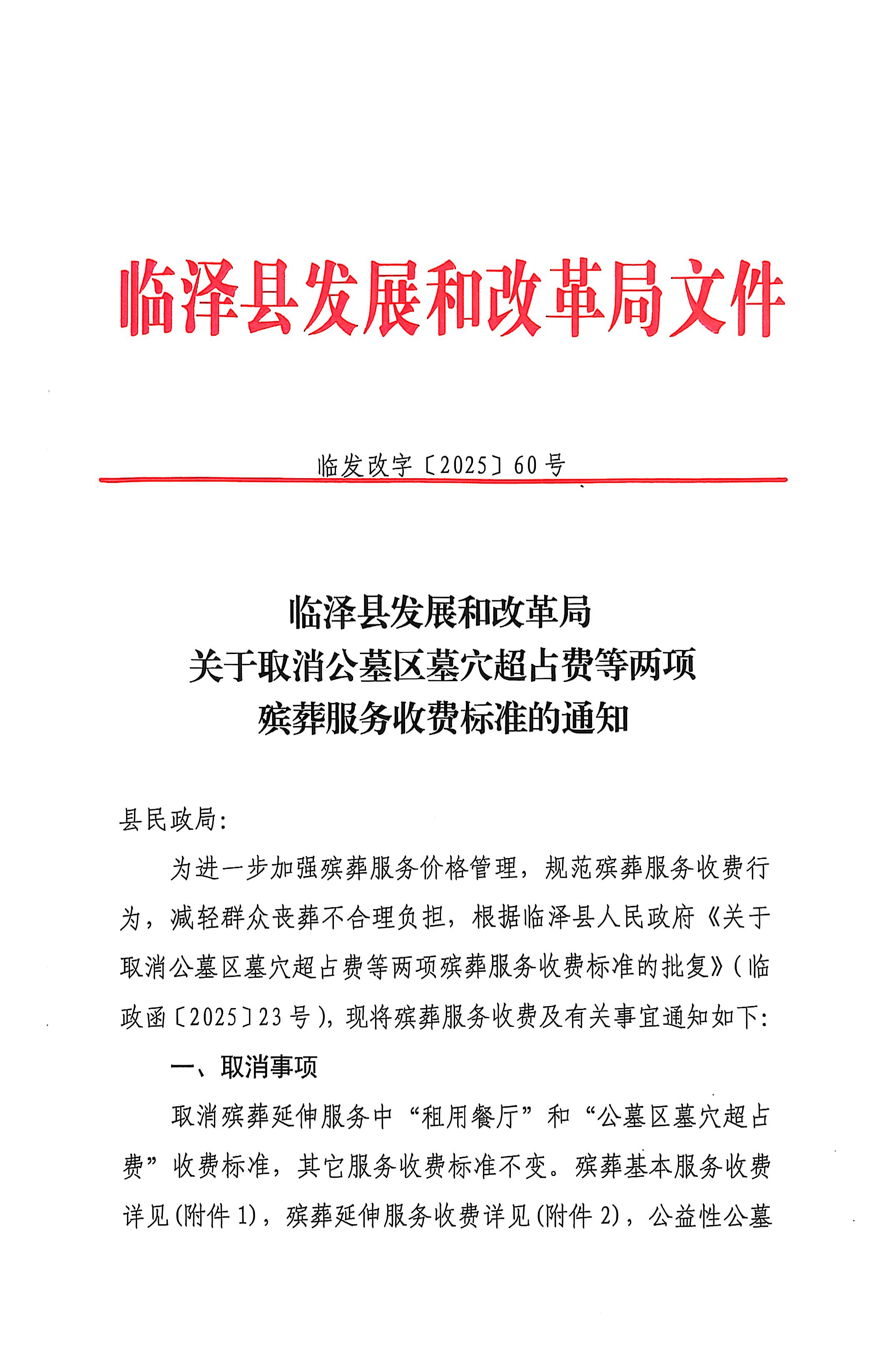 关于取消临泽县公墓区墓穴超占费等两项殡葬服务收费标准的通知