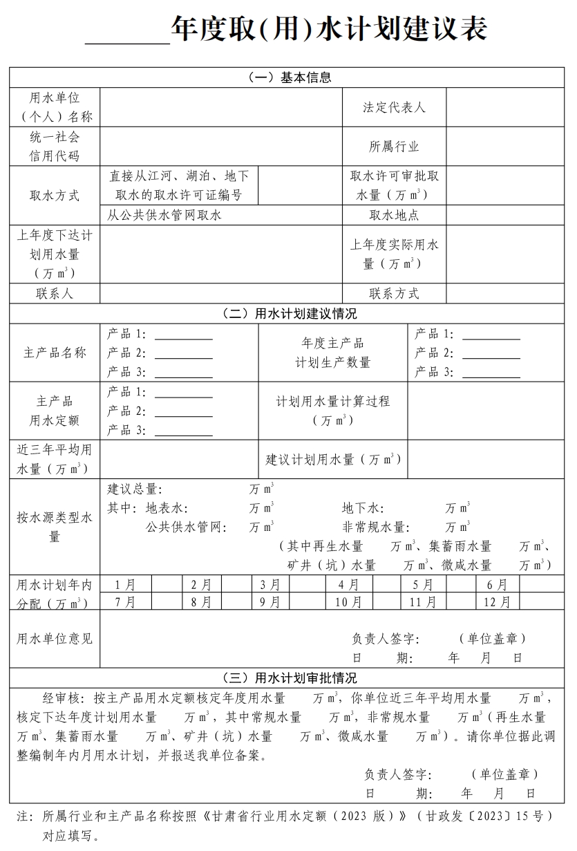 附件:_____年度取(用)水计划建议表附件