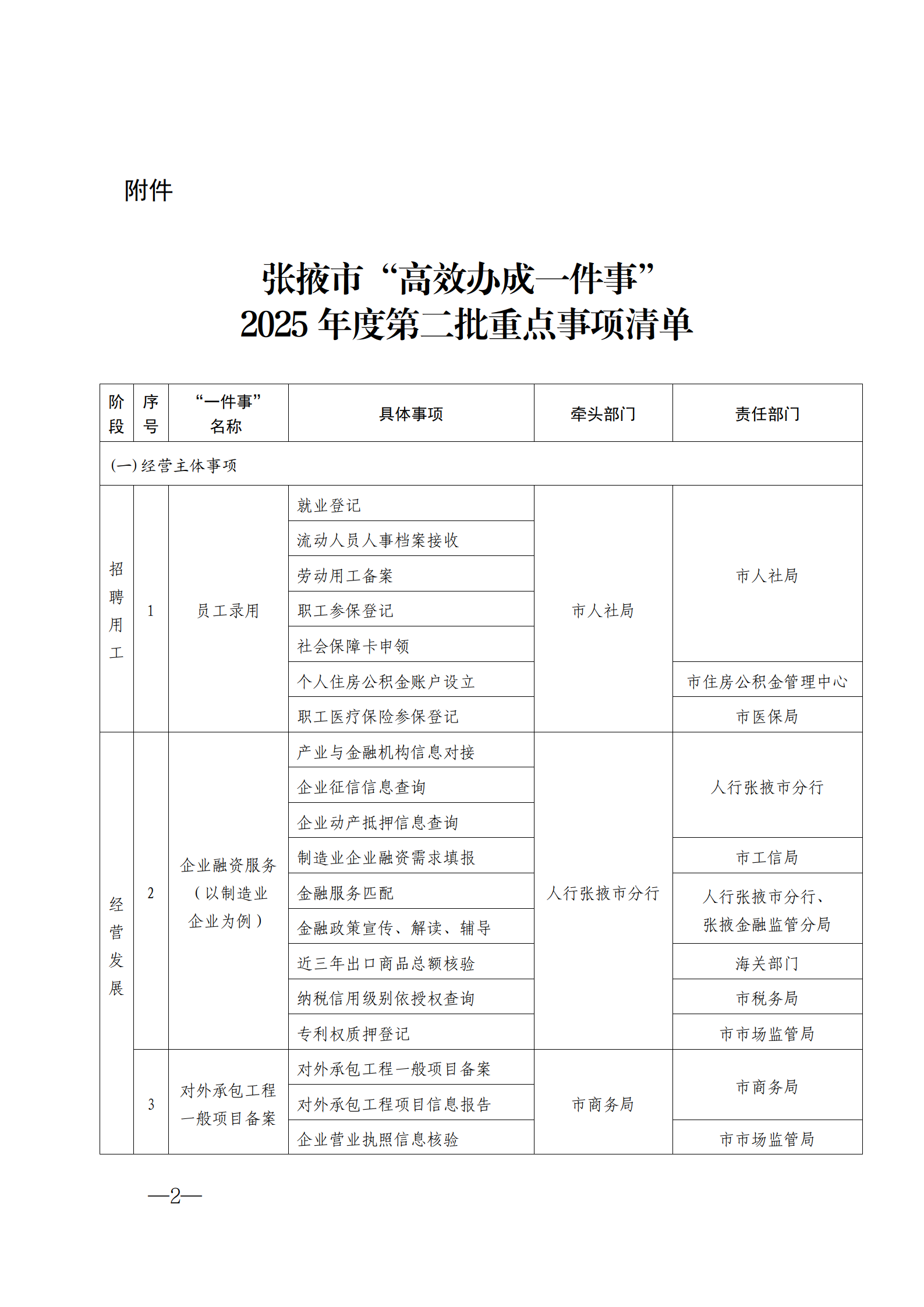 附件:张掖市“高效办成一件事”2025年度第二批重点事项清单