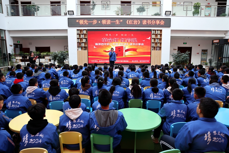 临泽四中初二年级“领先一步·领读一生”《红岩》读书分享会以主题分享、知识抢答等形式展开,引导学生重温革命岁月,感悟信仰力量。七位同学分别从江姐的坚贞不屈、刘思扬的成长蜕变、小萝卜头的纯真坚韧等角度分享阅读感悟,现场情感真挚、氛围热烈。知识抢答环节紧扣小说背景、人物与情节展开,进一步加深了同学们对红色经典的理解与认知。活动中,县图书馆还向分享者赠送图书,鼓励大家与书为伴、持续阅读。