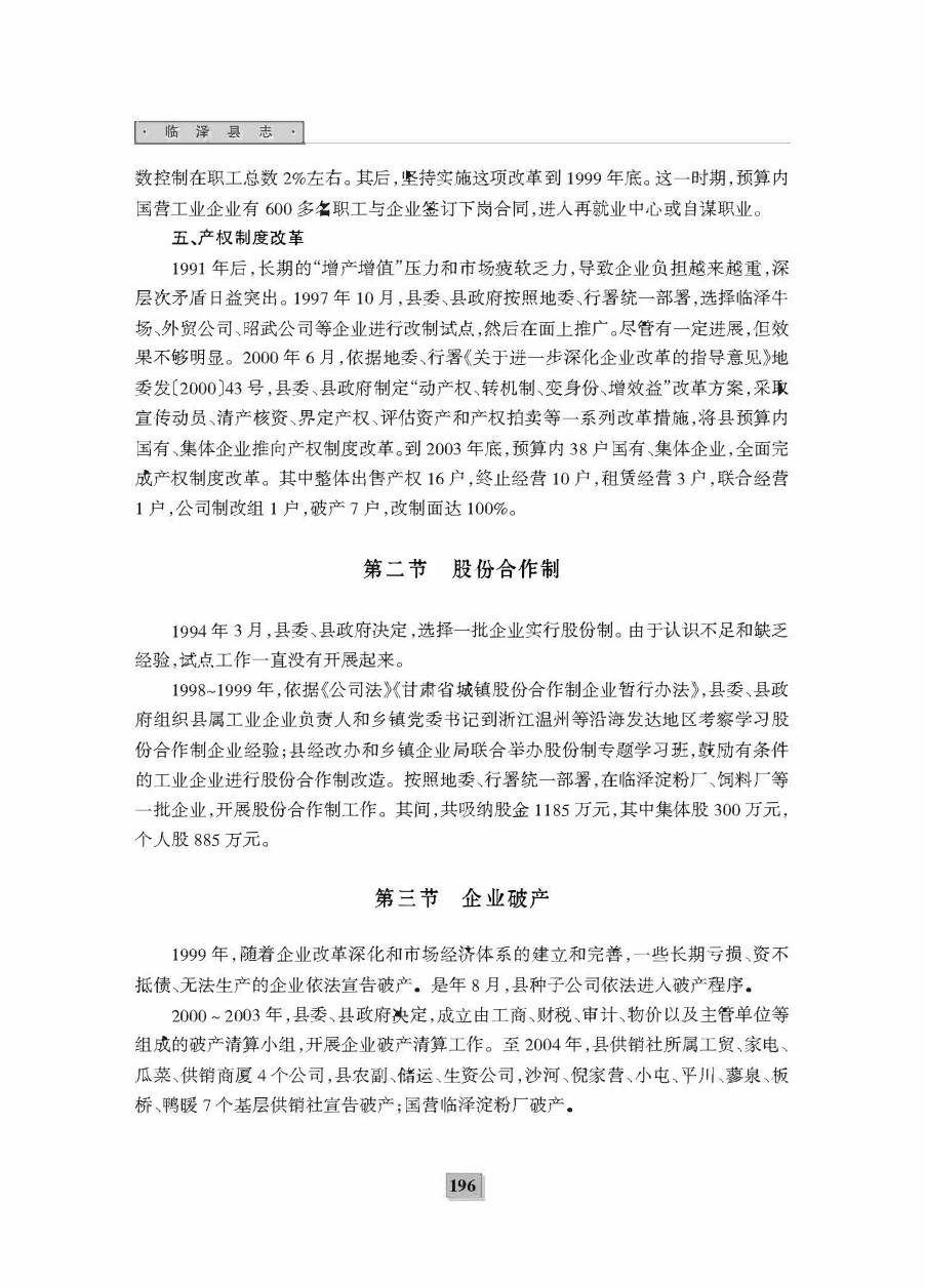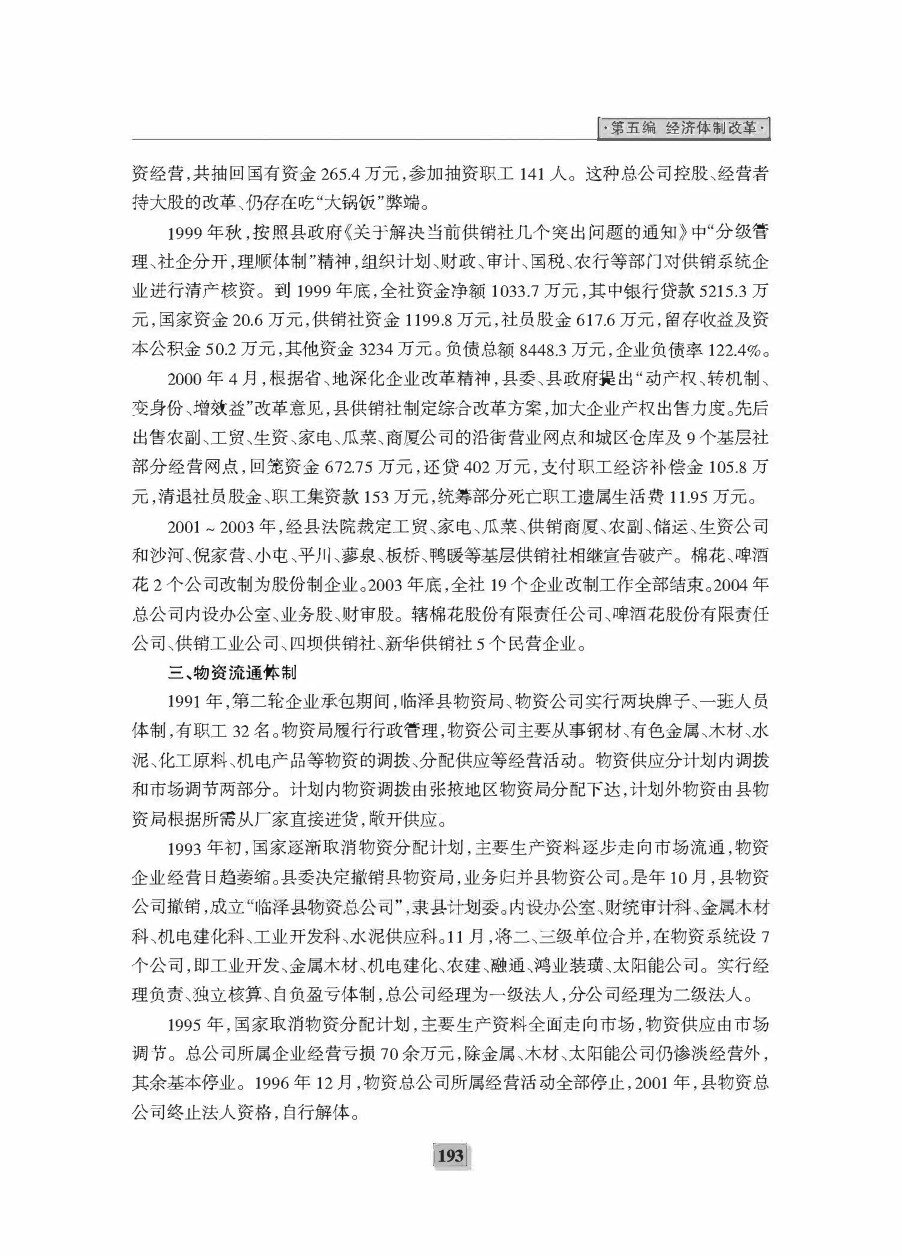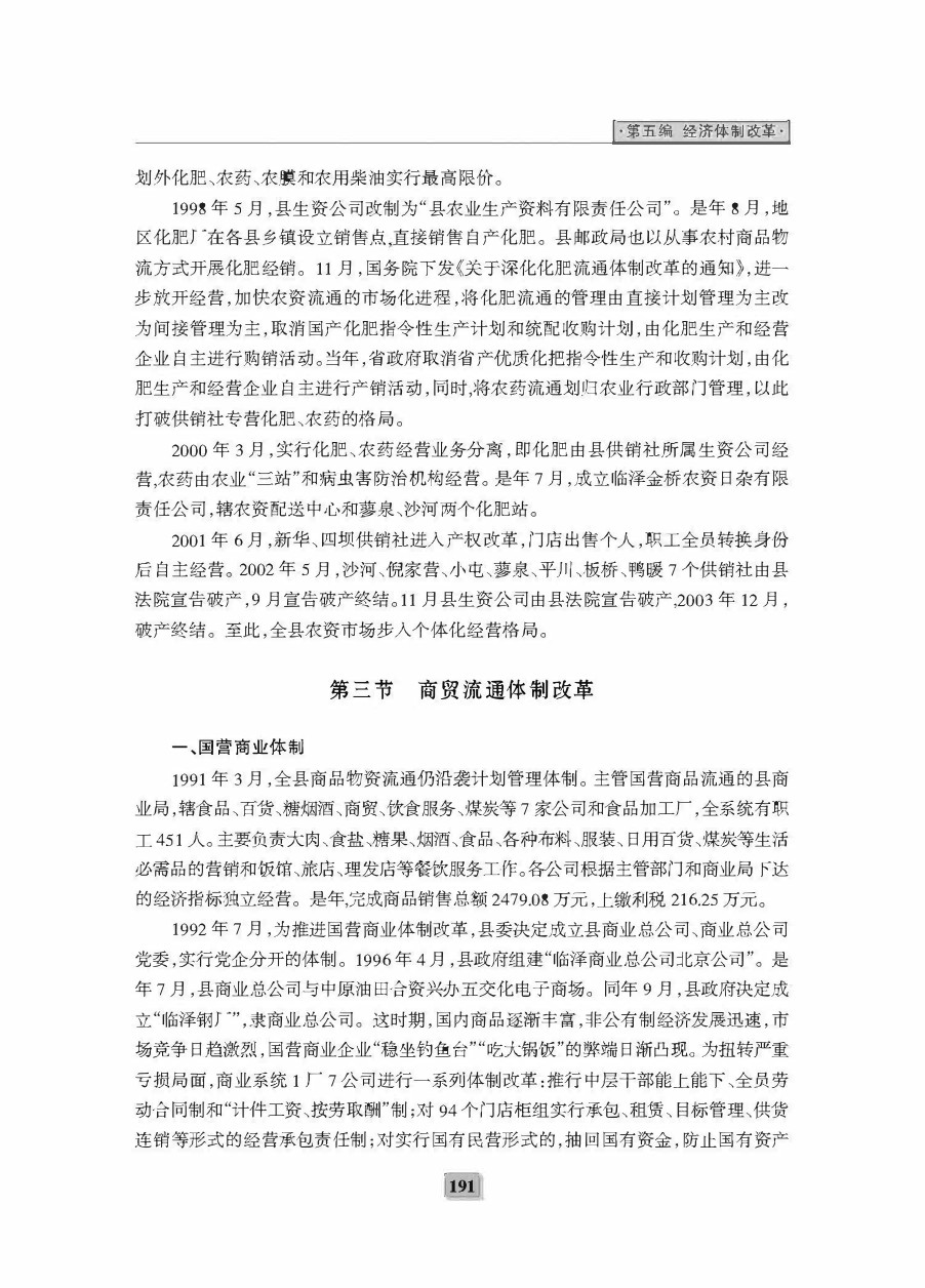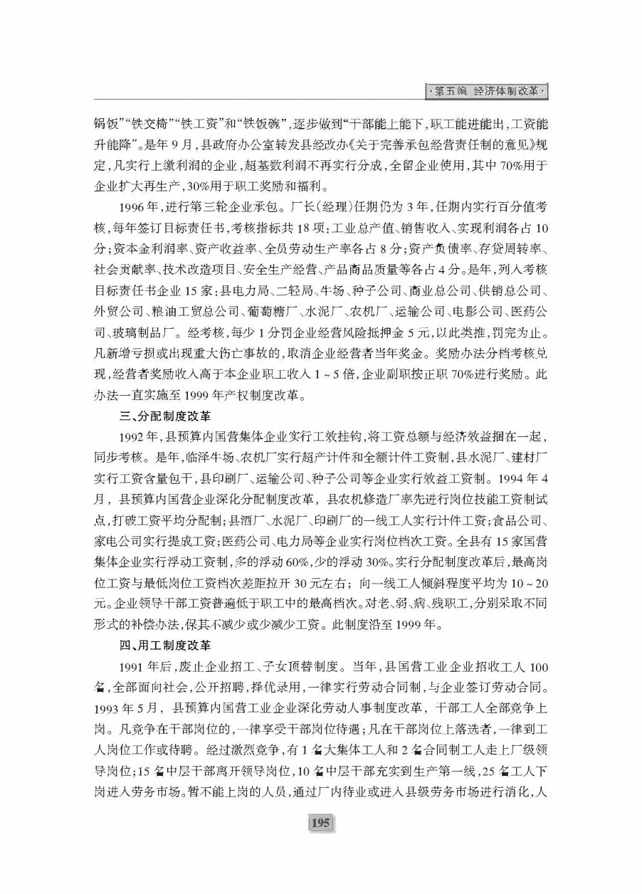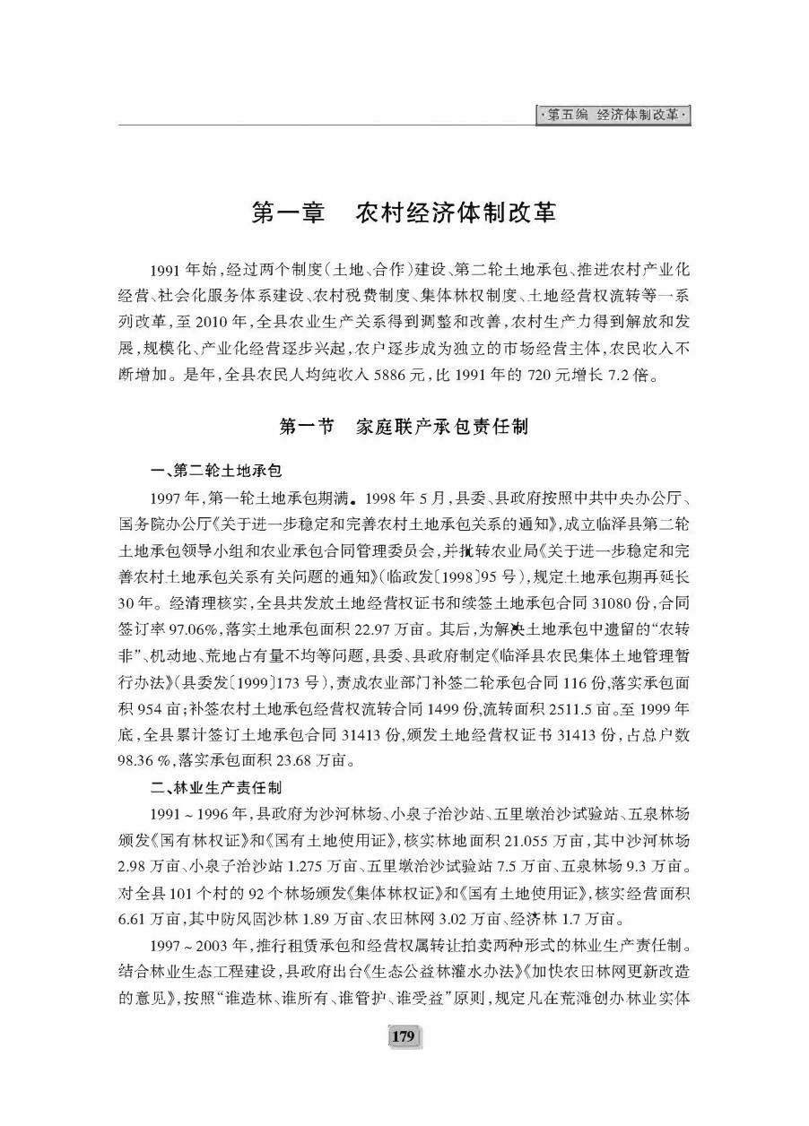 《临泽二轮县志》第五编 经济体制改革